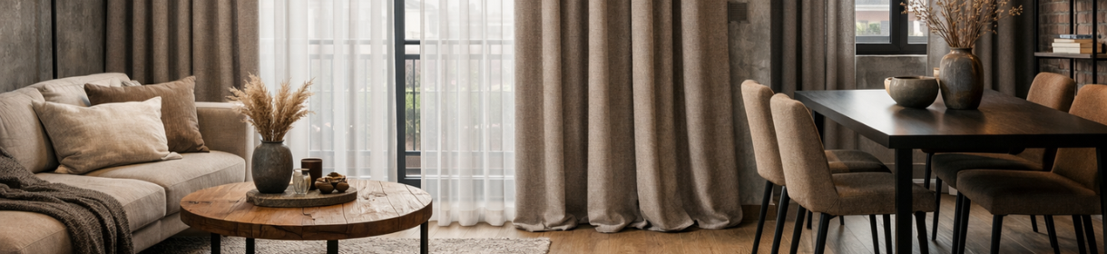 Interieurs worden steeds vaker ontworpen met aandacht voor het ritme van de dag. Transparante inbetweens filteren het daglicht subtiel en verzachten contrasten binnen zachte kleurpaletten. In de avonduren creëren overgordijnen in rijkere tinten een meer omsloten en intieme sfeer.